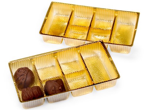 - Candy Trays will give your candies an elegant presentation. They have separated compartments to keep candy and chocolates protected. Available in several sizes, and gold or chocolate colors, these trays fit many of our gourmet and candy boxes. Use our candy cups and padded liners to build layers. Complies with FDA regulations for food packaging.
