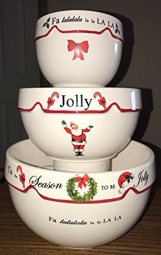 RARE Magenta (Manufacturer of Rae Dunn) 3 Bowl set of Christmas Mixing Bowls Tis the Season To Be Jolly Fa La La La La 9 in. 7 in. 5.5 in bowls, hopefully can help you in buying the product.